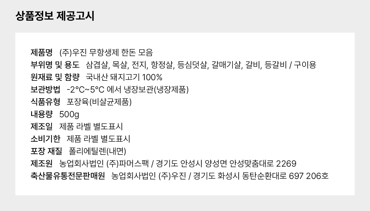 무항생제 한돈 삼겹살 냉장 500g